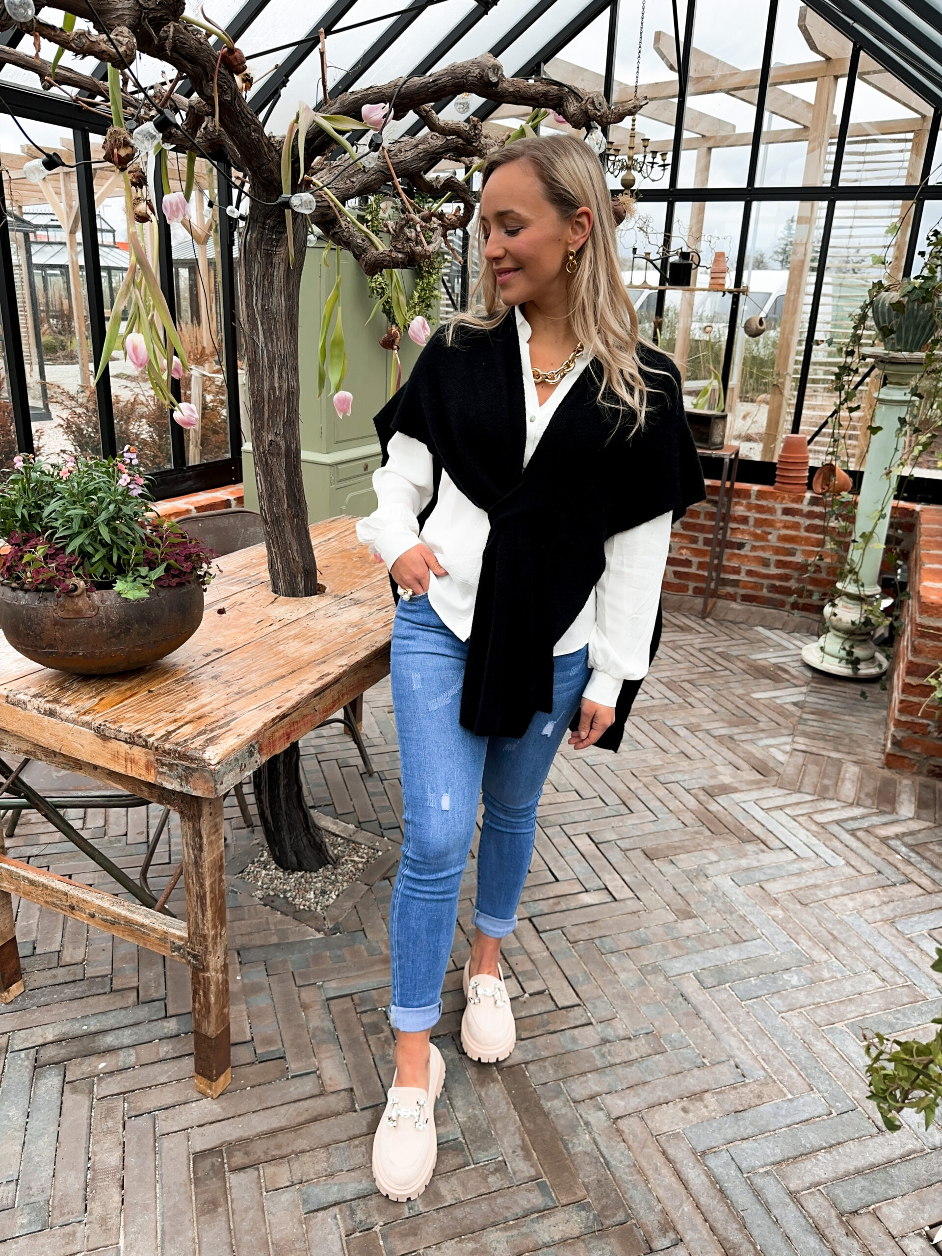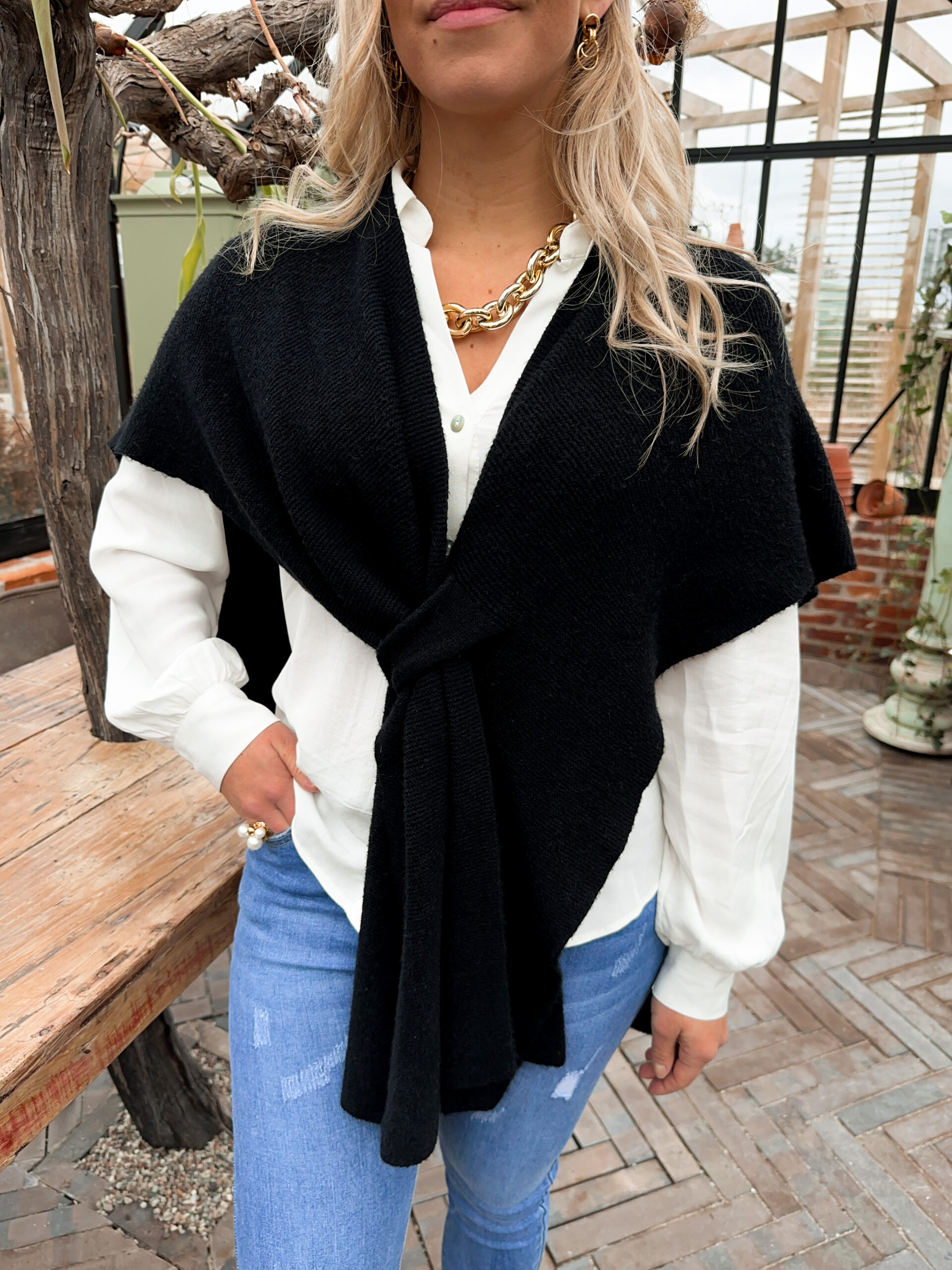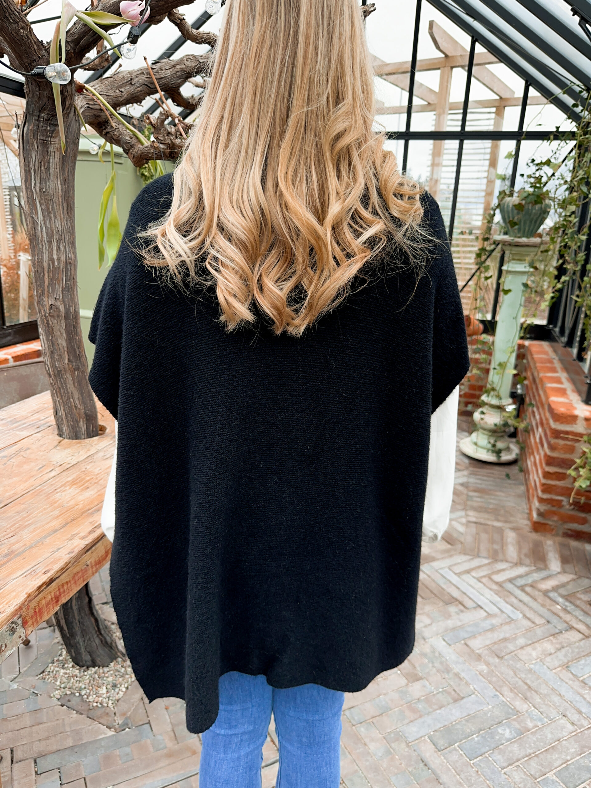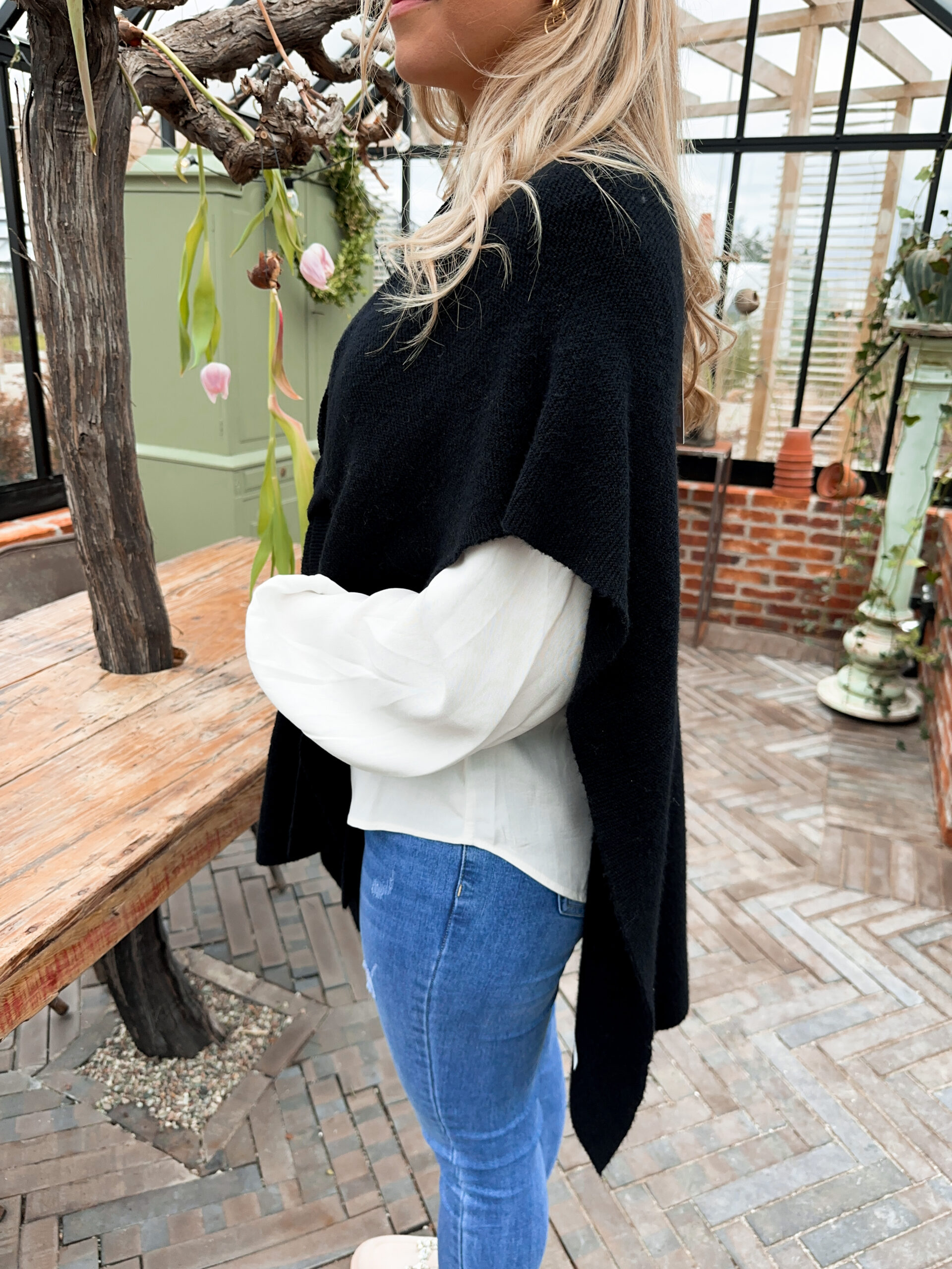 Stickad Poncho – Svart